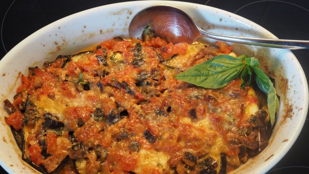 - Kalbfleisch, Auberginen, Mozzarella, Tomatensauce sowie den Parmesan lagenweise in einer gefetteten Auflaufform aufschichten, mit Tomatensauce und Parmesan abschliessen. Im Ofen bei 200°C 30 – 35 Min. überbacken.