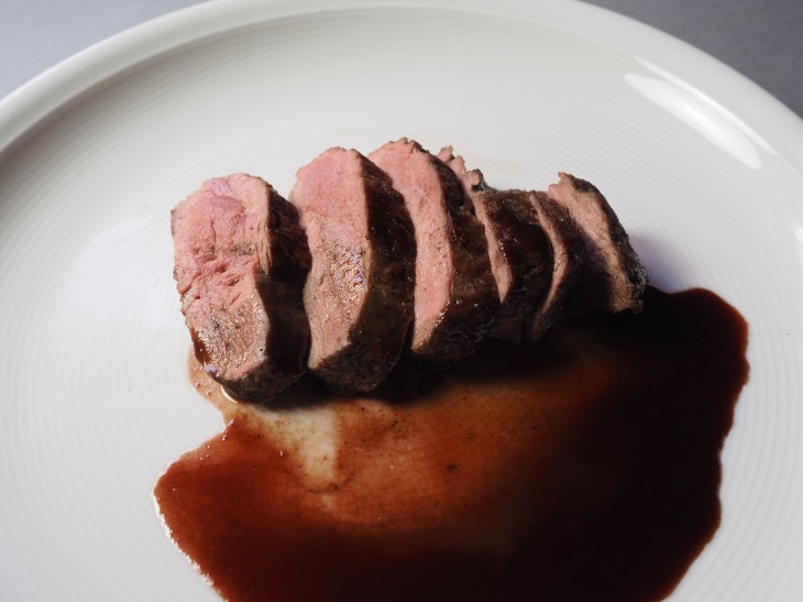 - Die Entenbrüstli tranchieren und mit der Sauce auf den vorgewärmten Tellern anrichten.
