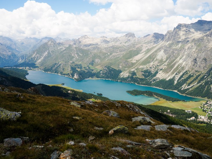 Wer in den See schaut, wird Hermann Hesse verstehen, der die Gegend einst als das «vorgeträumte Paradies» beschrieb. Das Dorf liegt idyllisch am Eingang zum Fextal, das mit Blumenwiesen übersät ist.