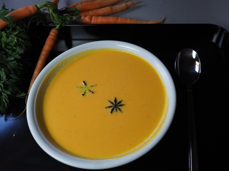 - Den Sternanis entfernen und die Suppe mit dem Stabmixer pürieren. Mit Salz und Pfeffer abschmecken.