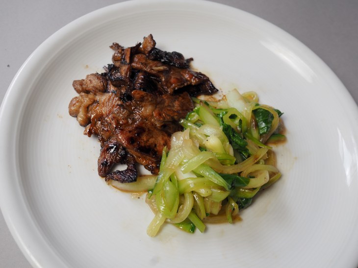 - Das Fleisch ebenfalls im Wok portionsweise braten und zum Schluss die Marinade kurz erwärmen. Zusammen mit dem Pak choi anrichten und mit einer Schale Reis servieren.