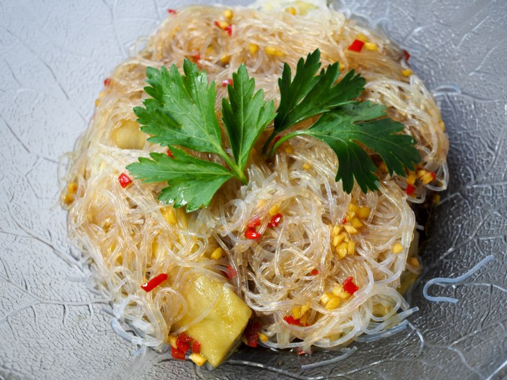 - Die Harusame-Nudeln gemäss Anleitung kochen und kalt abschrecken.