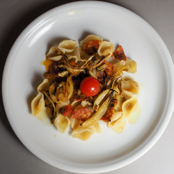 - Den Fenchel mit der Sauce mischen und zur Pasta geben.