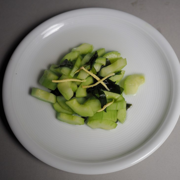 - Salz, Reisessig und Zucker verrühren, Gurken abspülen und trockentupfen. Zusammen mit den Algen zur Sauce geben und mischen.