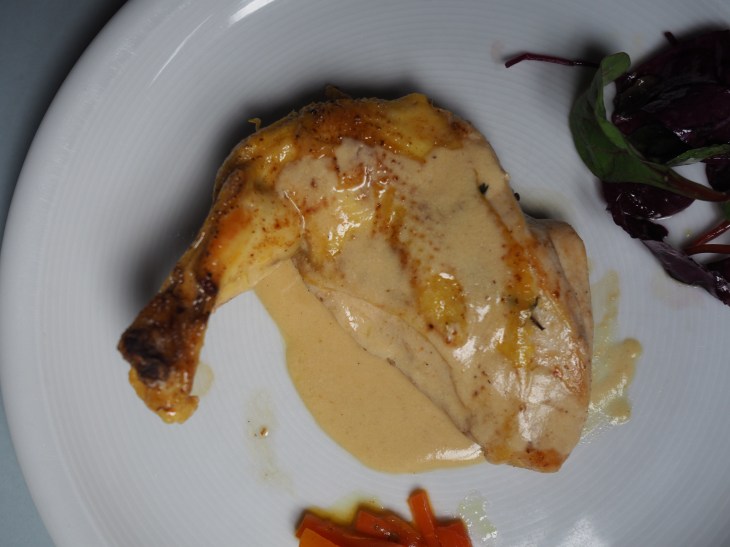 Zum Auftakt möchte ich ein festliches Gericht veröffentlichen. Früher gab es das Hähnchen nur an speziellen Tagen zu essen. Leider hat sich dies in den letzten Jahren sehr verändert. Das Hähnchen wird heute zu Schleuderpreisen angeboten aber die Qualität ist nicht mehr die, die ich in Erinnerung habe. Aus diesem Grund habe ich ein „Poulet jaune“ – gelbes Freiland-Hähnchen – besorgt und für die Sauce einen Riesling Spätlese „Erdener Treppchen“ gewählt. Den Rest des Weines darf man auch mit dem Essen geniessen, denn er ist zu gut um wegzuschmeissen.