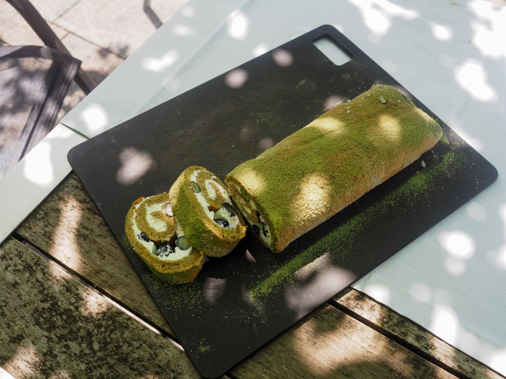 Das Rezept für diesen Japanischen Kuchen habe ich von meiner Lehrerin übersetzt erhalten. Allerdings konnte sie mir auch nicht sagen, wie es zum Namen „Swiss Roll“ gekommen ist. In der Schweiz jedenfalls kennen wir nur die Benennung „Roulade“. Die Heidelbeeren waren nicht im Originalrezept aber farblich und saisonal passen diese Sommerbeeren sehr gut zum Kuchen.