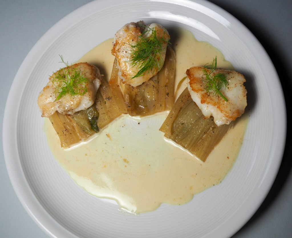 - Den Fisch auf den Fenchelscheiben anrichten.