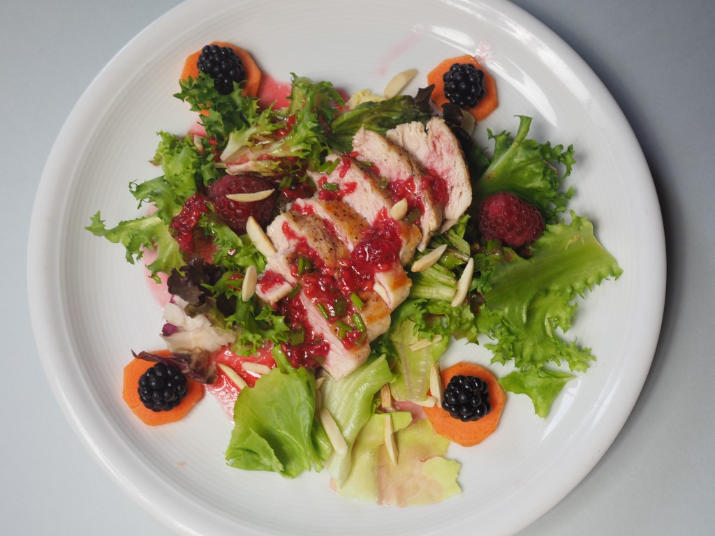 Es ist Sommer und die Saison für leichte und frische Salate. Meinen Salat habe ich mit köstlichen Himbeeren bereichert.