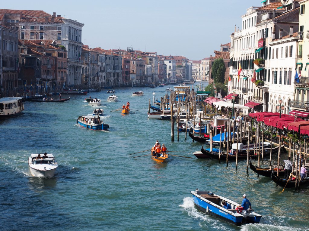 Venedig, die Lagunenstadt und Hauptstadt von Venetien in Norditalien ist die Stadt, die keiner anderen gleicht. Als Verkehrswege gibt es fast ausschliesslich Kanäle, darunter der Canale Grande mit seinen eindrücklichen Palästen. Erkunden kann man die Stadt zu Fuss, mit dem Boot oder den Gondeln. Eine Stadt ohne Autos, ohne Motor- und Fahrräder, also ein Paradies für alle Fussgänger.
