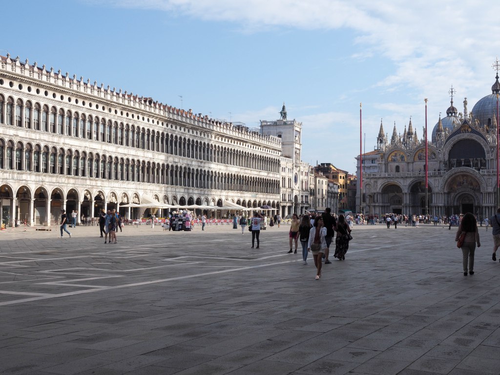 Der berühmteste Platz in Venedig ist sicherlich der Markusplatz. Alle, die Venedig schon besucht haben, werden mit mir einig gehen, dass die Pandemie einen positiven Effekt auf den Touristenboom hatte. Meine letzte Reise liegt schon 20 Jahre zurück und ich habe in Erinnerung, dass der Menschenandrang auf und um den Markusplatz bedeutend grösser war.