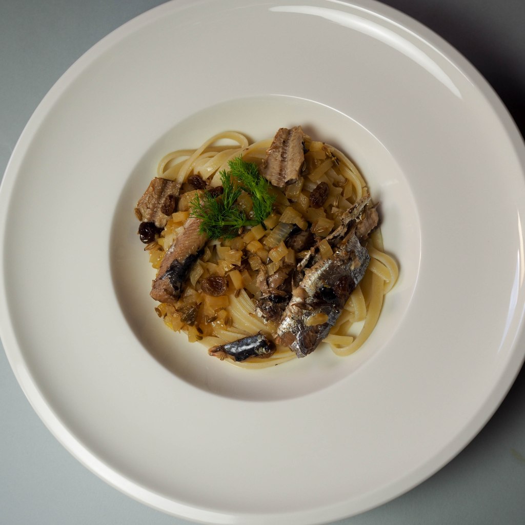 - Die Rosinen abgiessen, die Sardinen vierteln und beides in die Pfanne geben. Nochmals während 5 Min. köcheln. Eventuell etwas Kochwasser der Pasta dazugeben.
