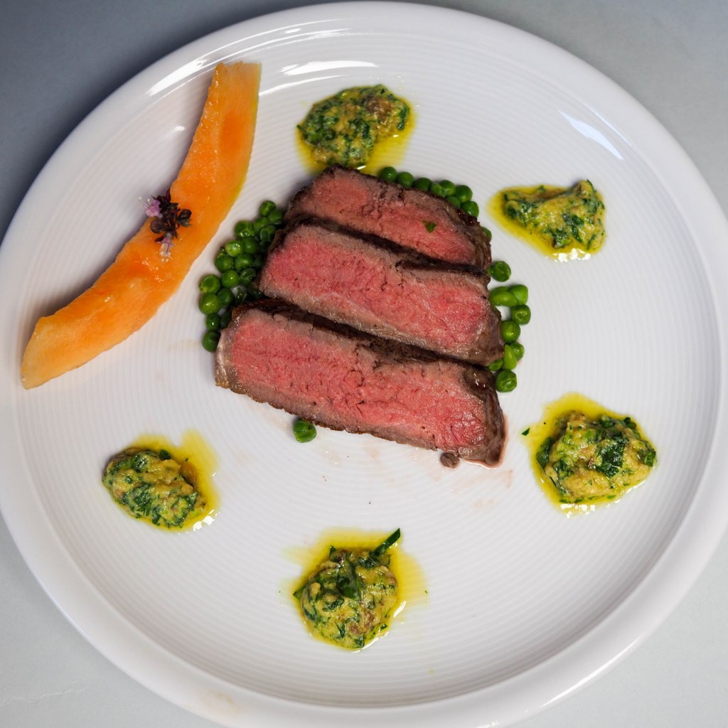 - Das Entreôte aufschneiden und zusammen mit der Sauce servieren.