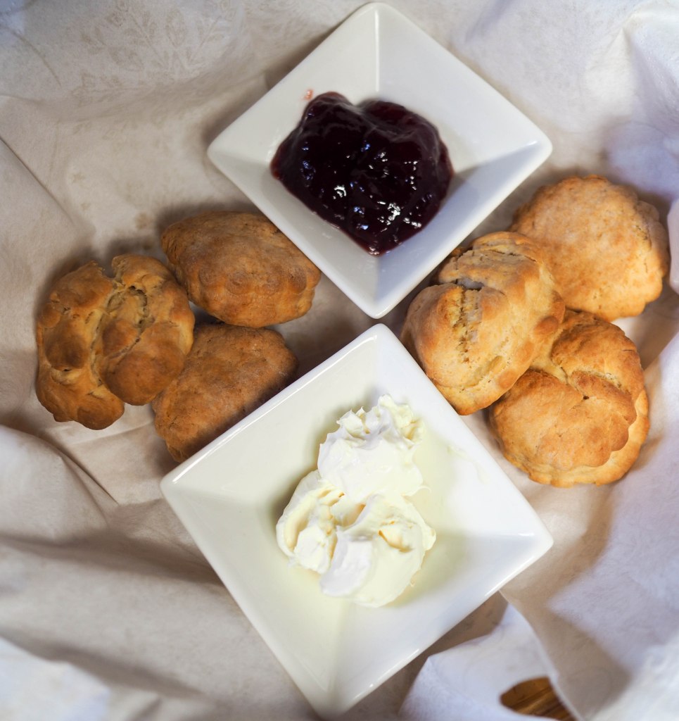 Der Cream Tea ist eine kleine Mahlzeit und besteht aus Tee, Scones, clotted Cream und Erdbeerkonfitüre. Die Grafschaften Devon and Cornwall beanspruchen den Cream tea erfunden zu haben. In beiden Regionen steht die Milchwirtschaft im Zentrum und die Molkereispezialität clotted cream ist hier beheimatet.