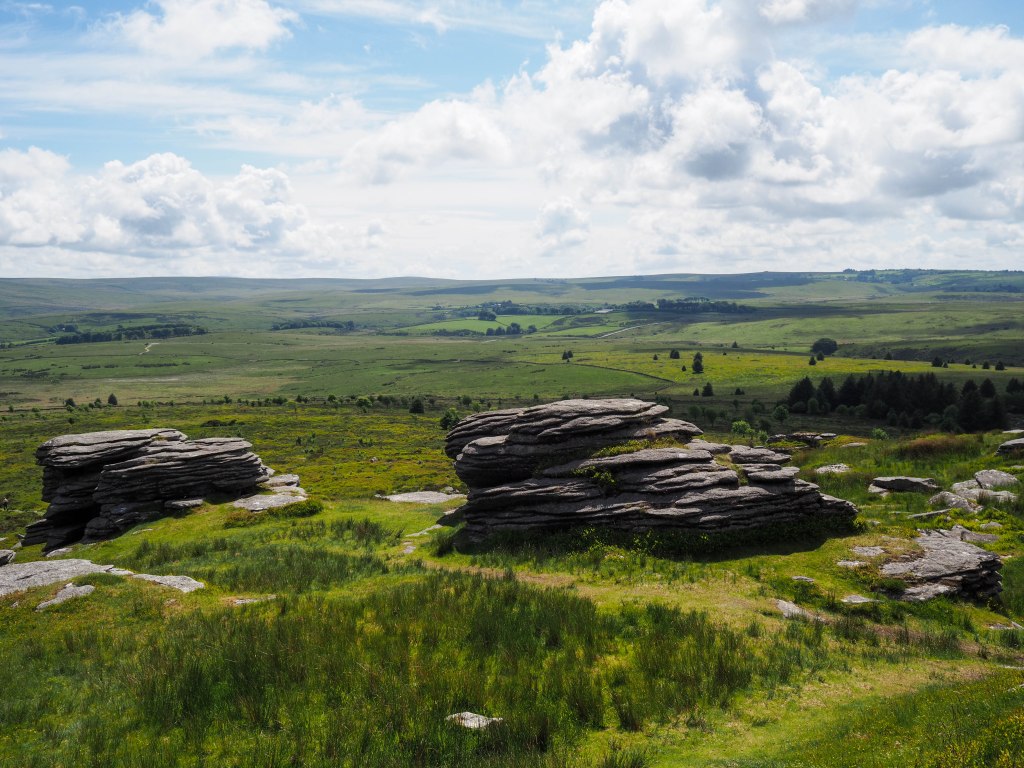 Das Dartmoor ist auch bekannt für seine „Tors“, Granitfelsen, die auf den Hügelketten angeordnet sind.