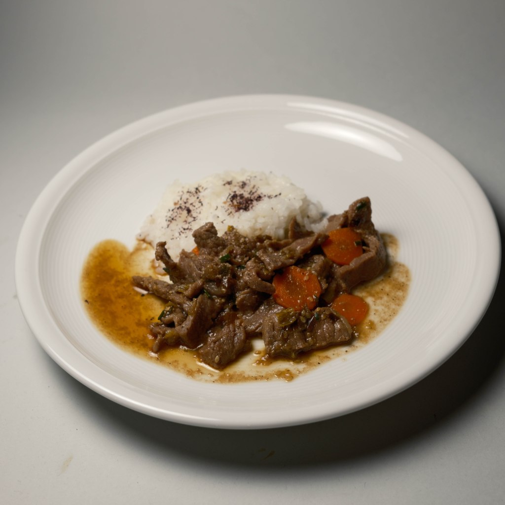 - Den Wok mit 1 EL Öl erhitzen, das Gemüse rührbraten, das Rindfleisch zugeben und scharf anbraten. Die Marinade beifügen und kurz erwärmen.