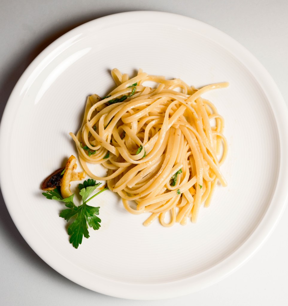 - Die Pasta al dente kochen und eine Tasse des Kochwassers beiseitestellen.