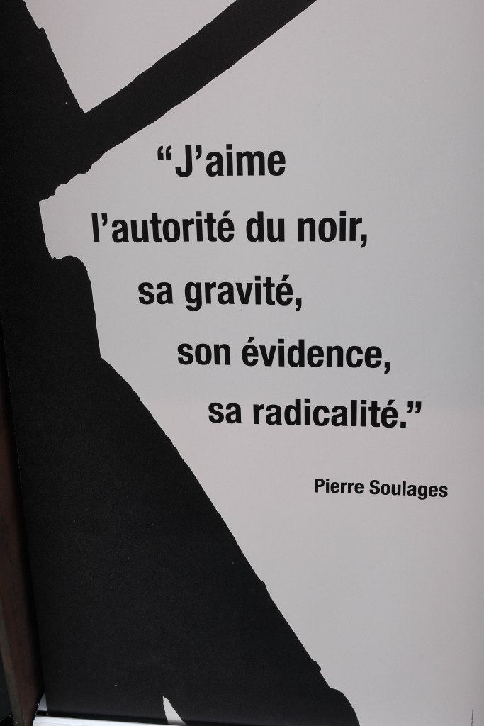 Pierre Soulages, einer meiner Lieblingsmaler, ist 2019 in Rodez geboren und im Jahre 2022 gestorben. Die bevorzugte Farbe des Künstlers ist schwarz. Die abstrakten Bilder sind nicht gegenständlich aber wohl überlegt aufgebaut. Je nach Blickwinkel drücken seine Bilder etwas anderes aus. Die Japaner sahen in seinen Werken kalligraphische Formen. Mit unorthodoxen Werkzeugen schaffte er Rillen und Formen, die die unter dem Schwarz liegenden Farben teilweise intensiv leuchten lassen.